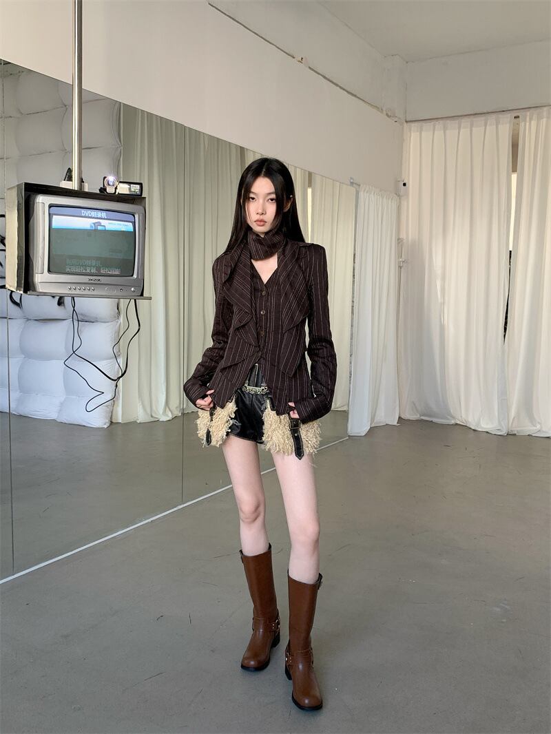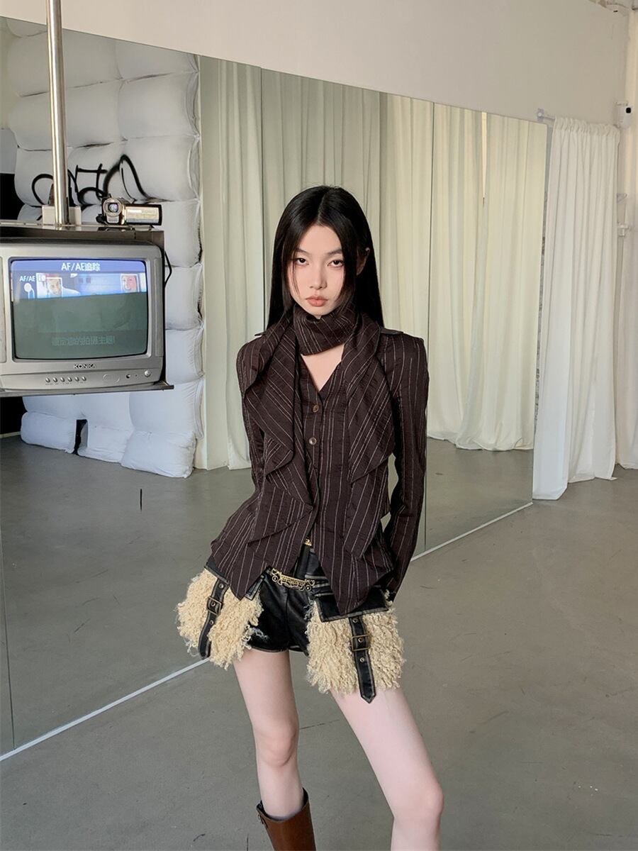 ストライブ柄 ブラウス マフラー付き 長袖 綺麗め