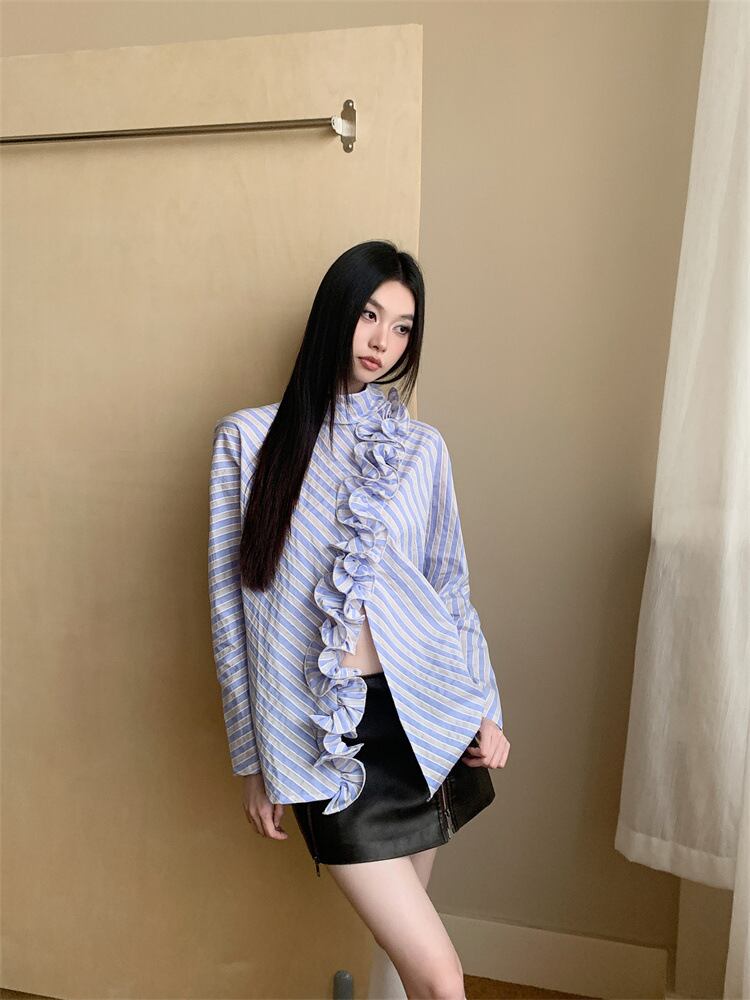 可愛い ブラウス 不対称 フリル 長袖 シャツ ルーズ