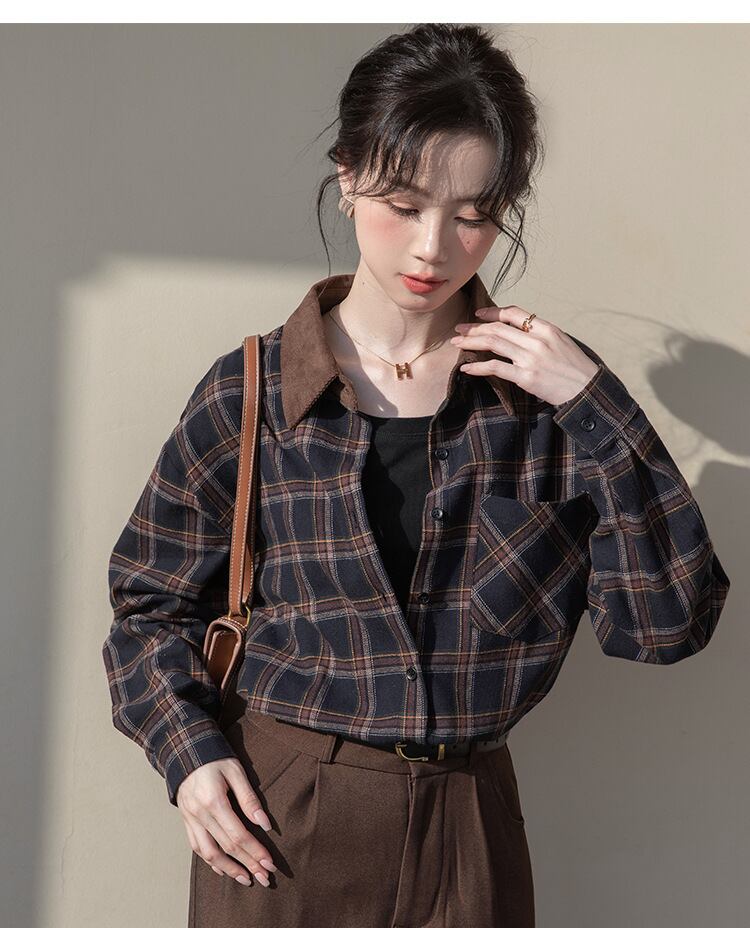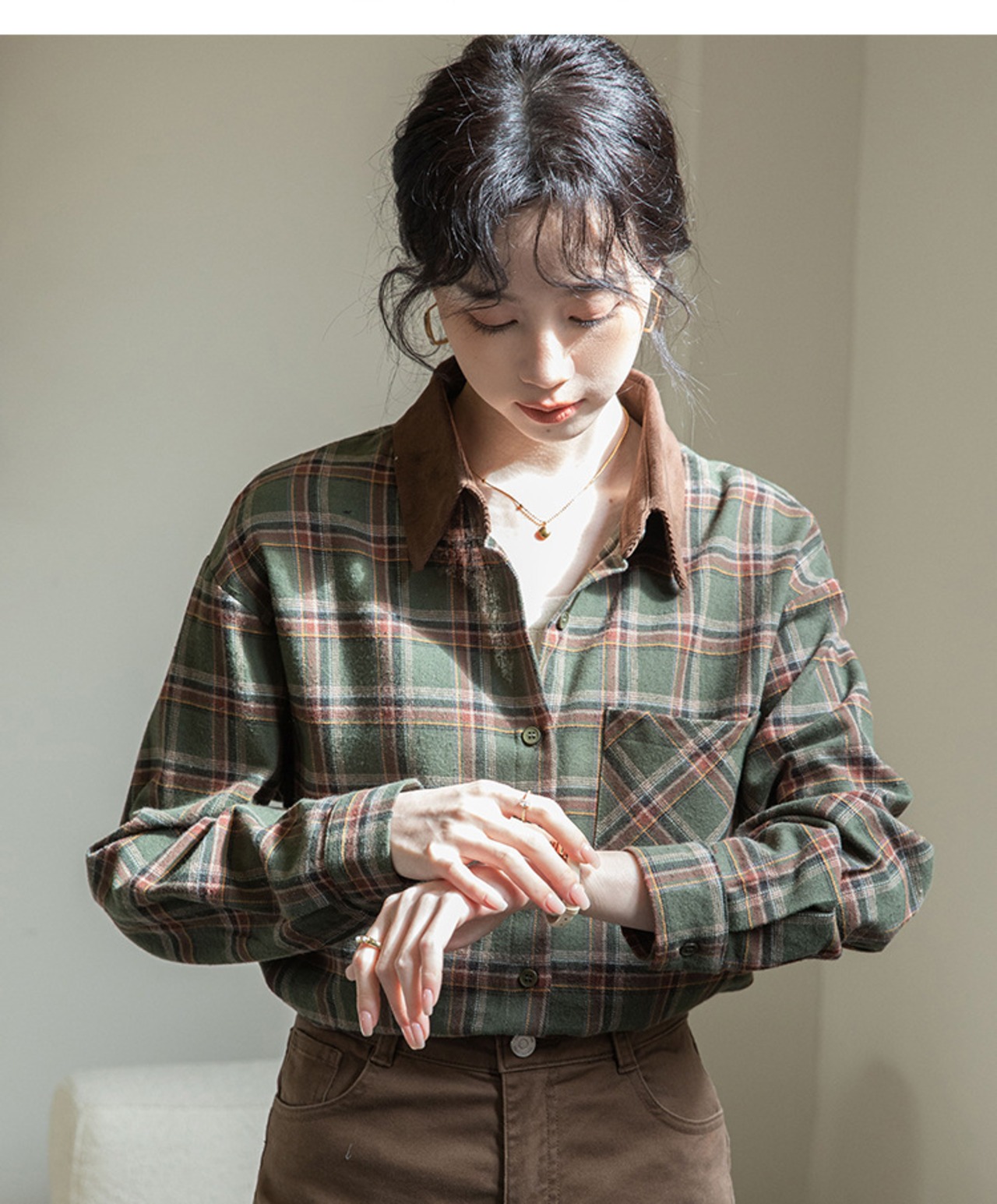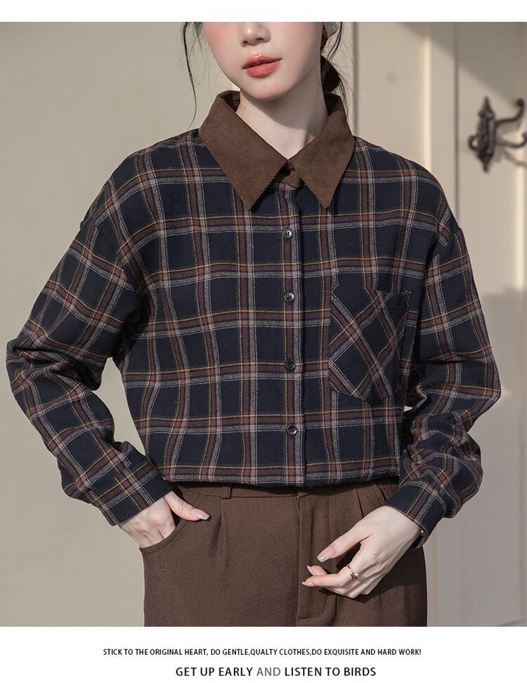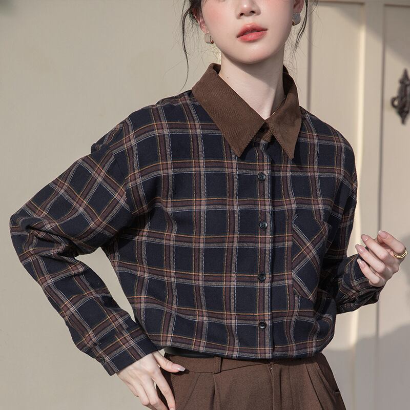 チェック柄 ブラウス 2色 長袖 シャツ 厚め