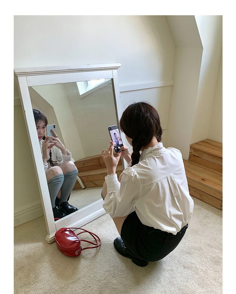 透かし彫り リボン ブラウス 2色 長袖 シャツ 綺麗め