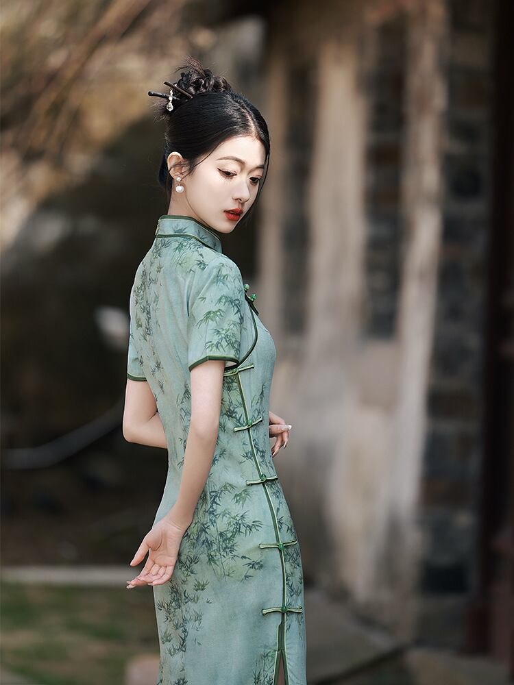 竹柄 チャイナドレス チャイナ服 チャイナボタン 綺麗め 女らしい 大きいサイズ