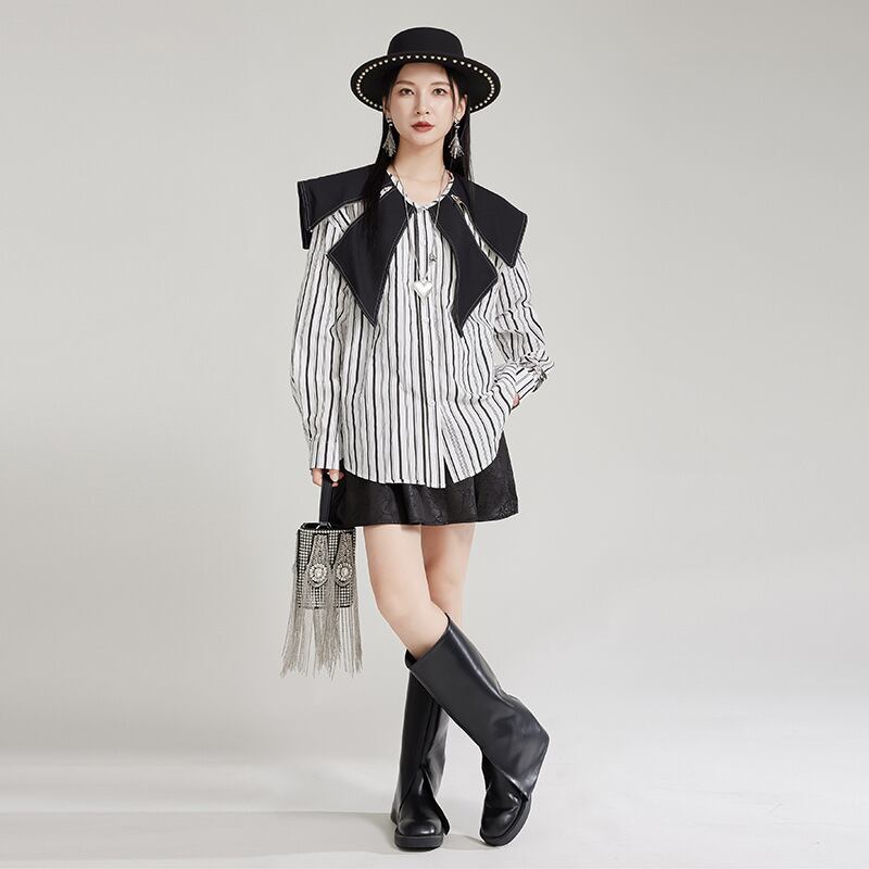 折り襟 ブラウス 3色 長袖 ルーズ 綺麗め 着痩せ