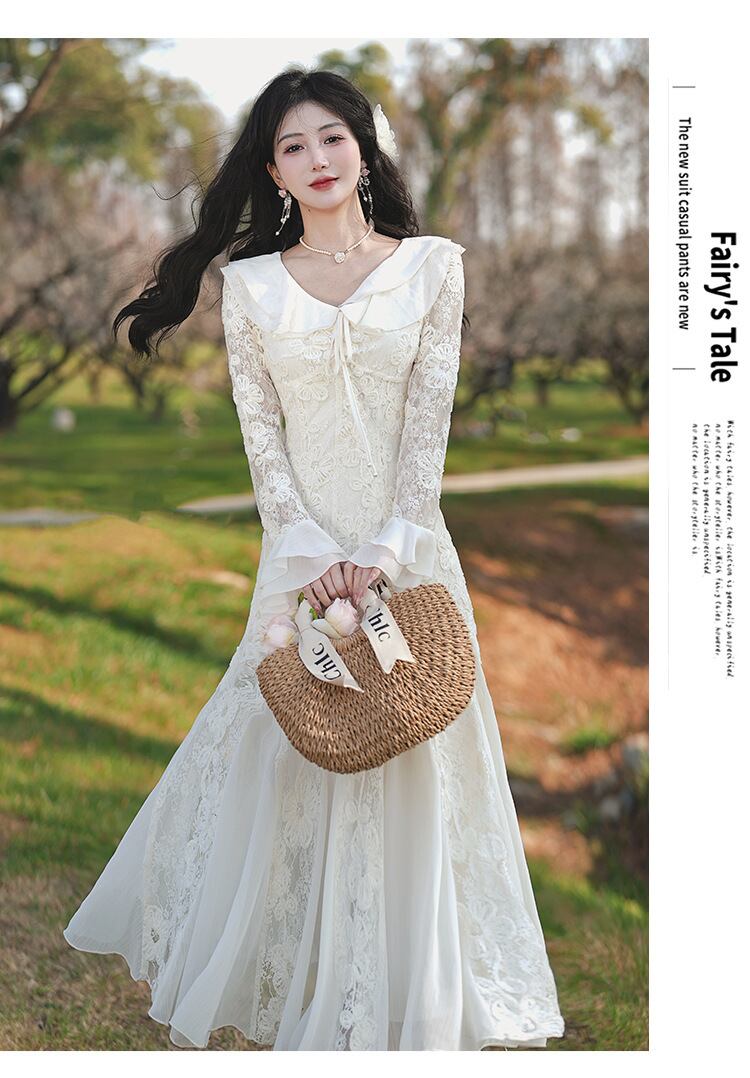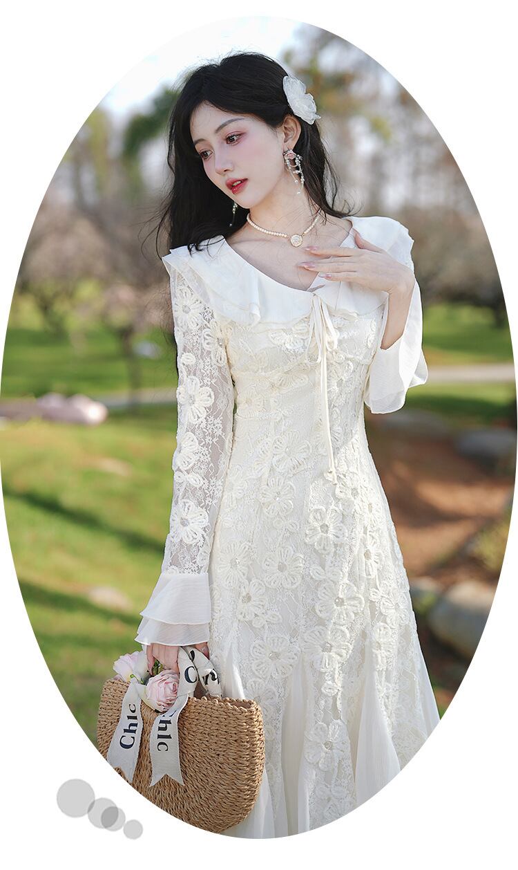 レース ワンピース フィッシュテール 長袖 ハイウェスト 綺麗め
