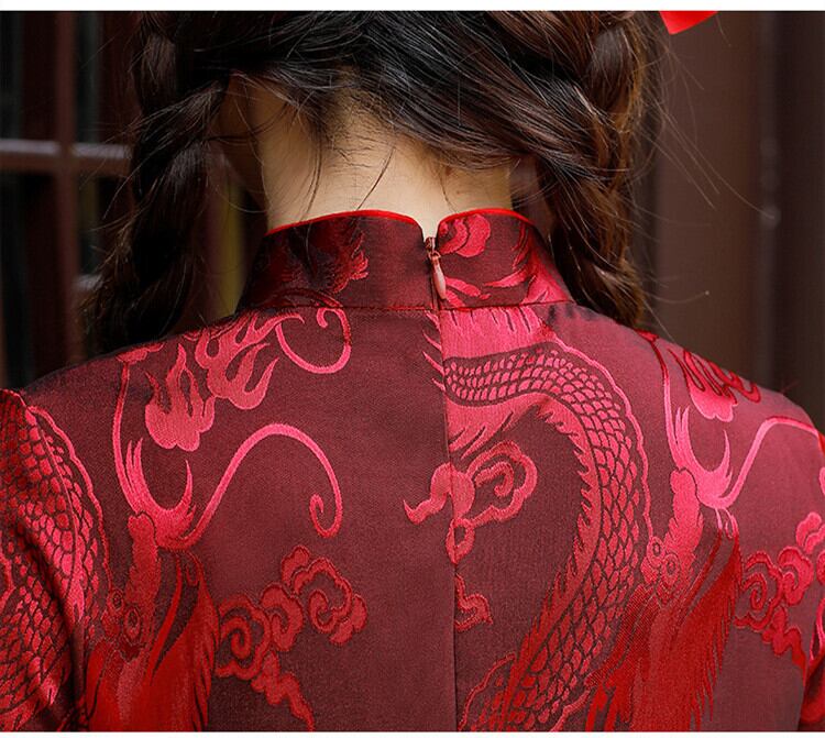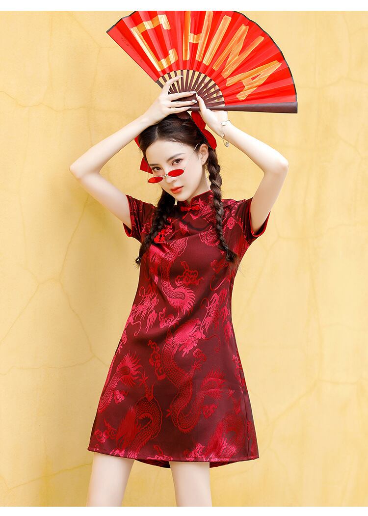 龍柄 チャイナ風ワンピース チャイナボタン チャイナ服 洋服 ワンピース 大きいサイズ