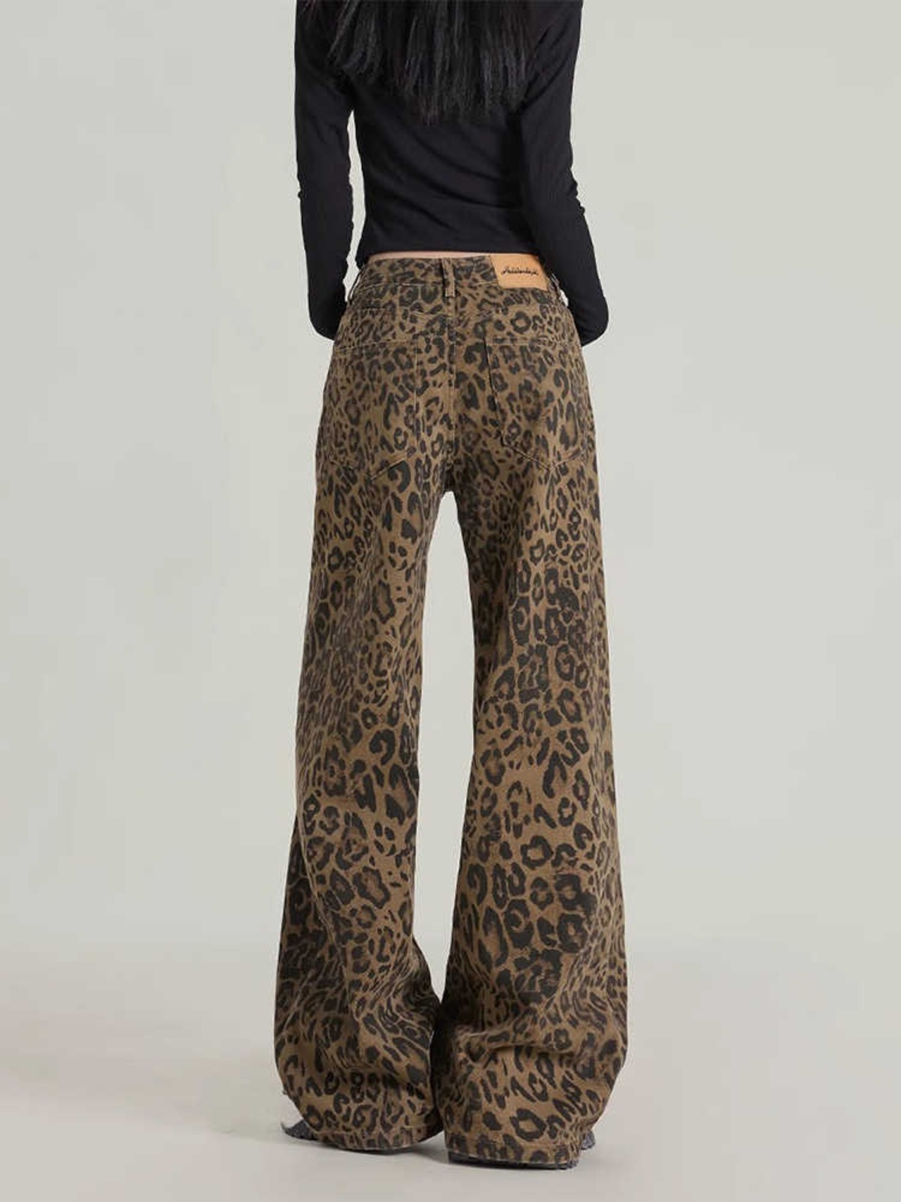 ヒョウ柄 ワイドパンツ デニムパンツ おしゃれ 着心地抜群 ジーパン 大きいサイズ