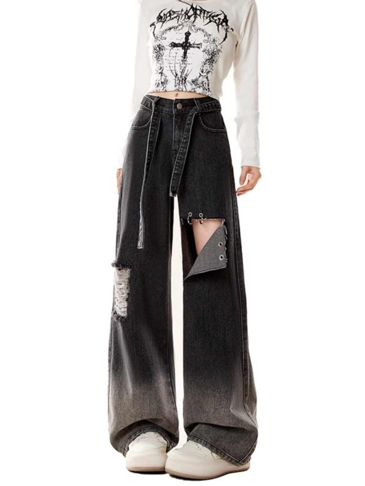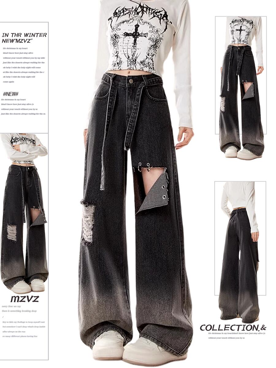 ダメージ加工 デニムパンツ ハイウェスト グラデーション 着心地抜群 ジーパン 大きいサイズ