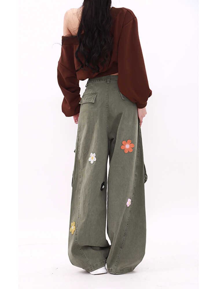 刺繍 花 デニムパンツ ハイウェスト 可愛い 着心地抜群 ジーパン 大きいサイズ