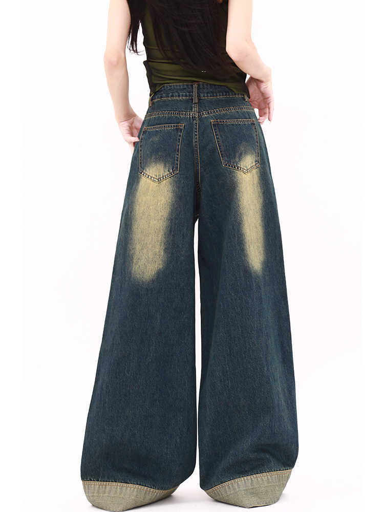レトロ ダメージ加工 デニムパンツ ハイウェスト グラデーション 着心地抜群 ジーパン 大きいサイズ
