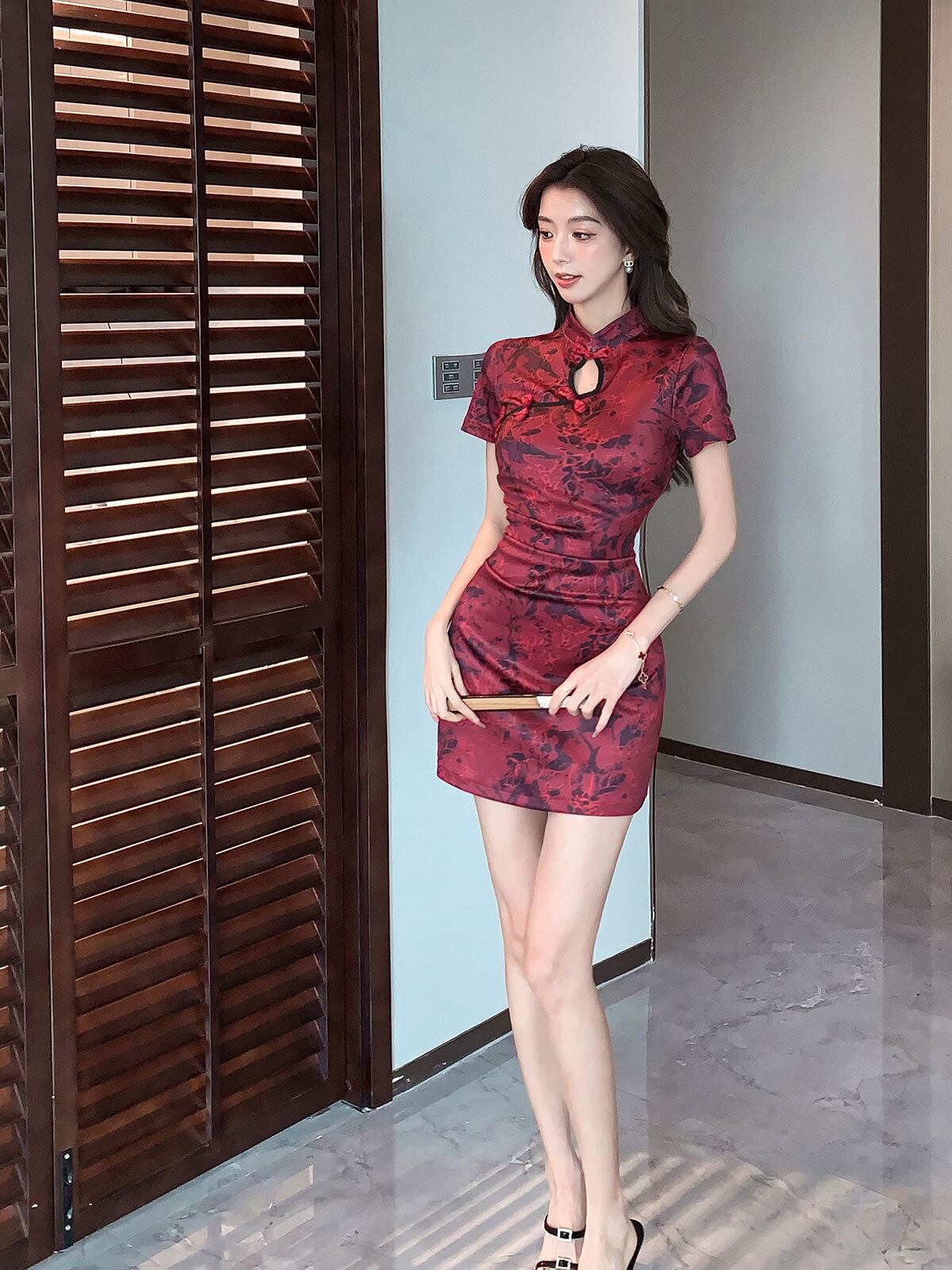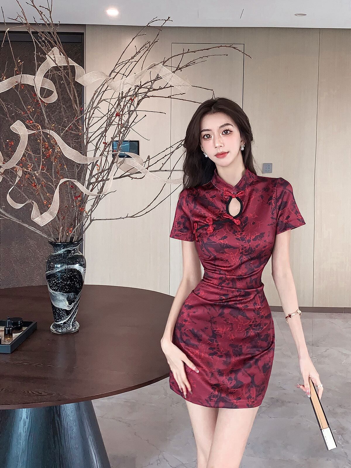 チャイナ風ワンピース タイト チャイナボタンオシャレ