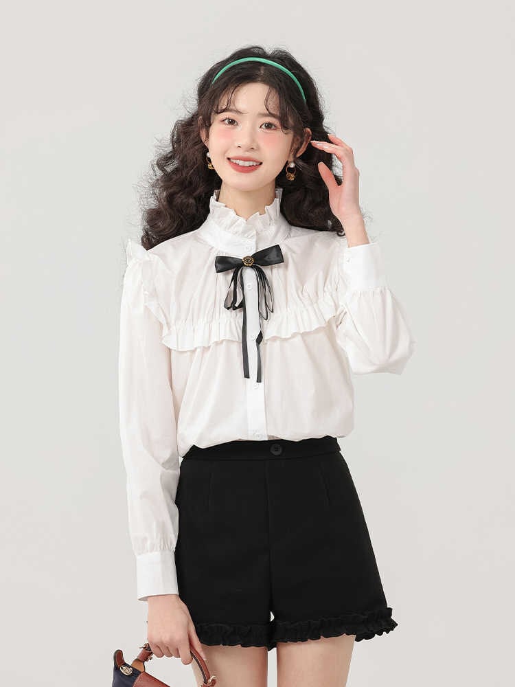 スタンドネック ブラウス リボン 長袖 着痩せ 綺麗め オシャレ