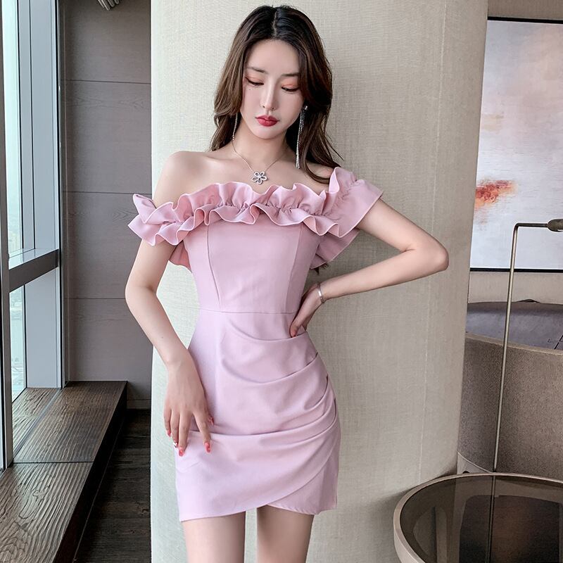 ボートネック ワンピース フリル タイト キャバドレス ナイトドレス オシャレ